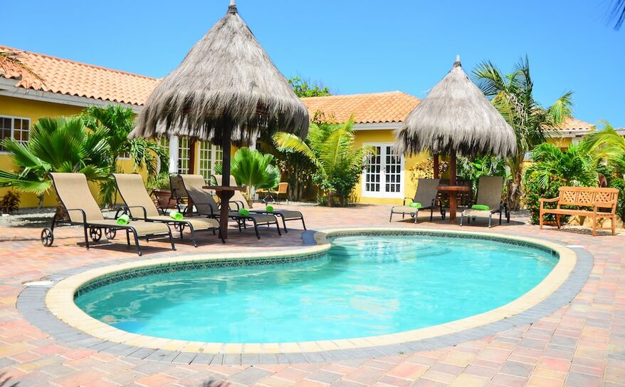 Aruba, ArubaThese self-service, fully equipped apartments are set among feathery palms, vibrant tropical flowers and a distinctive mid-century, atomic-style pool, all within a lush garden frequented by iguanas and complemented by a barbecue area. Located just five minutes from Eagle Beach (Tripadvisor 2020 Travelers’ Choice Award), the property offers a unique and authentic stay in Noord, blending retro mid-century design with tropical island charm. Practical and comfortable, the apartments feature individual climate control, TV and a modern kitchenette, providing everything needed for a relaxed and convenient holiday escape.